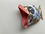 500mlの牛乳パックで作ってみました(写真)。 ペットボトルのフタは 3.5cm×3.5cm以下なので 赤ちゃんが飲み込まないように、要注意ですね。 |