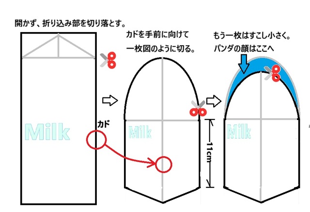 牛乳パックの胴体を両側から押すとぱっかんと 開いてパンダがばあ~~